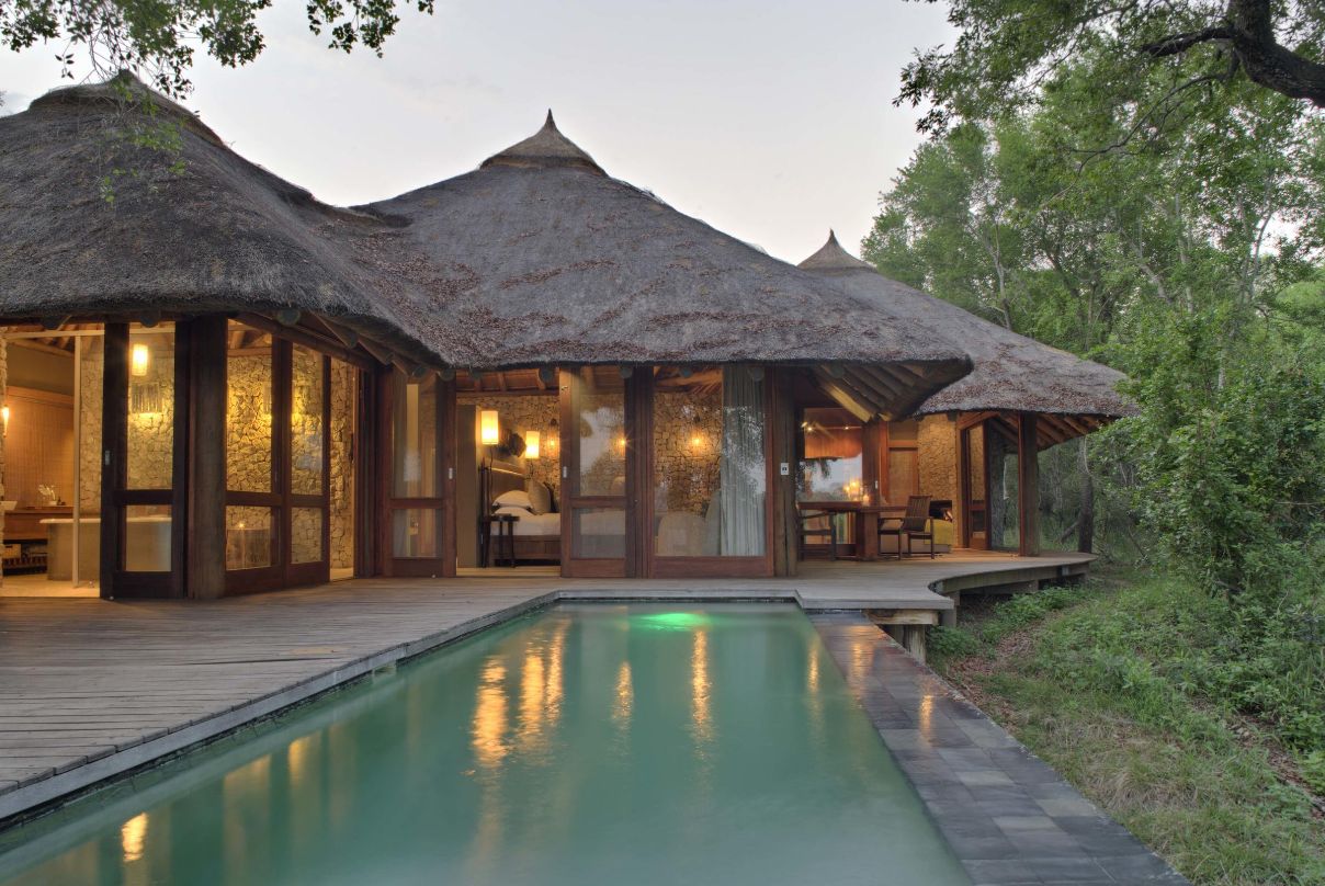 The spacious and luxurious suites are distanced from each other for solitude and serenity. The suites are designed with crushed stone, raw cement, rough granite and glass. Each air conditioned suite has a fireplace, sitting room, ensuite bathroom, outdoor shower and private plunge pool. Leadwood Lodge is the perfect choice for a family or group of friends sharing a safari together.