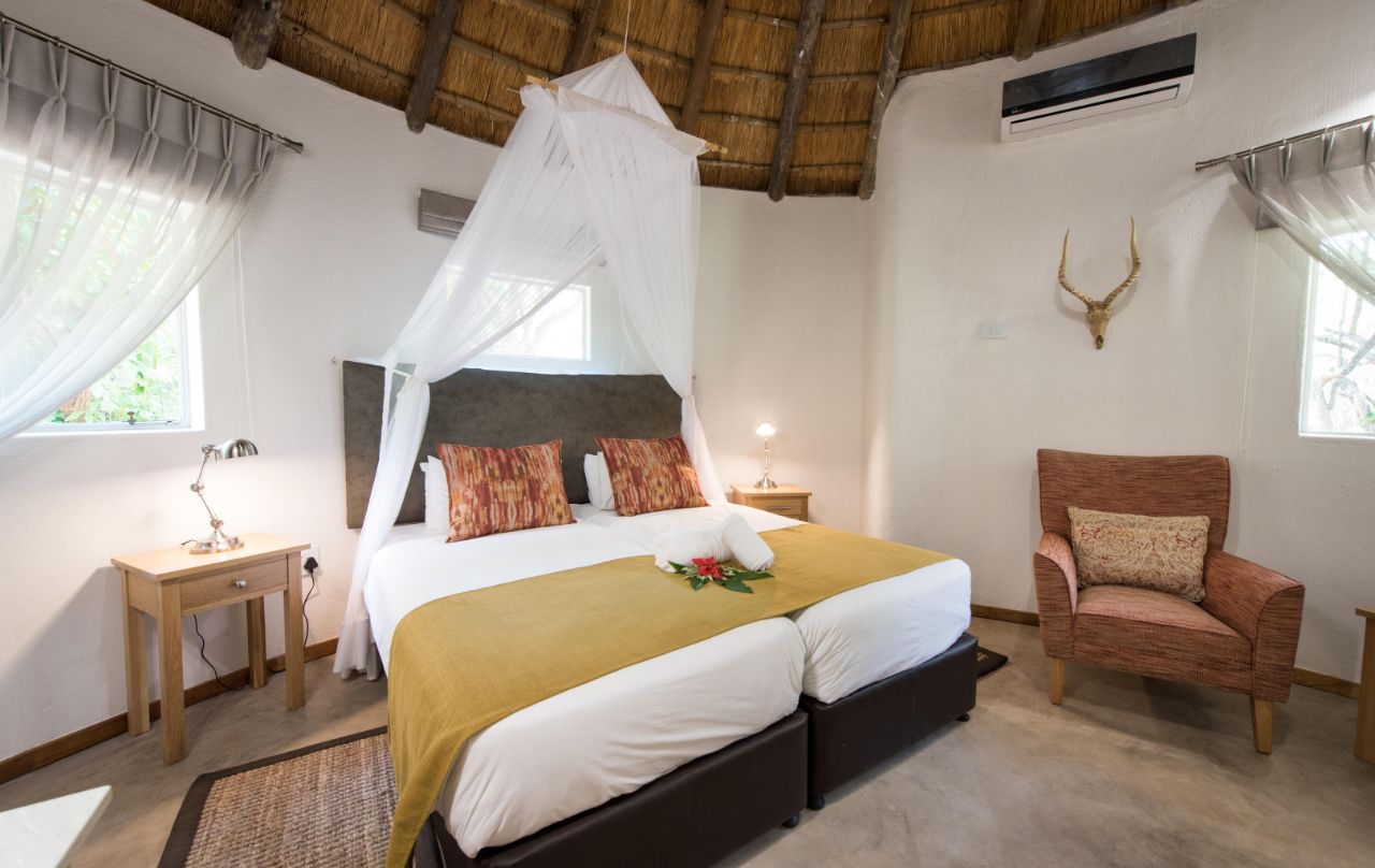Consists of double and twin beds, en-suite bathroom with shower, toilet, fridge, coffee/tea making facilities, alarm clock, hairdryer, air conditioning, private veranda and private parking. The rondavels are situated amidst tropical gardens some with dam views.
