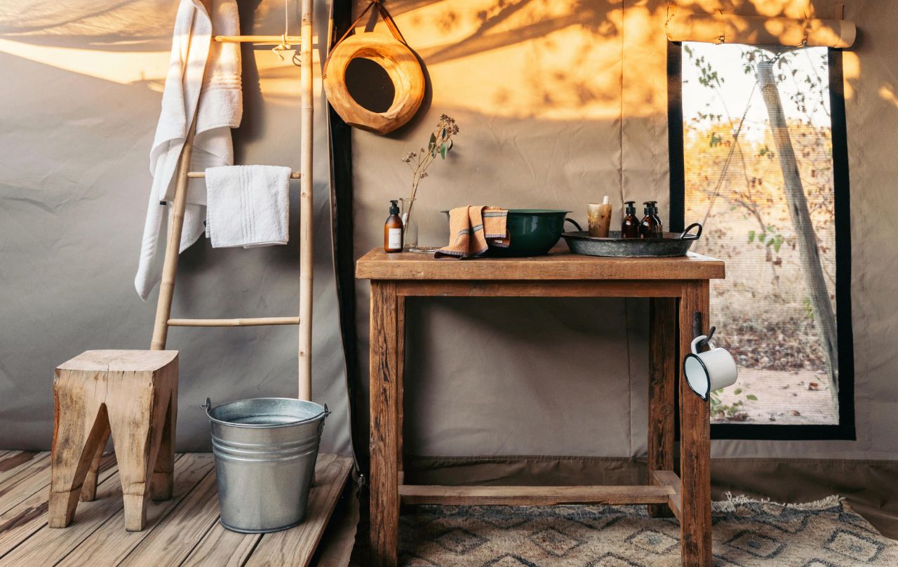Four en-suite Meru-style tents are surprisingly spacious with proper furniture and mosquito nets. En suite bathrooms have a proper flush toilet and a simple basin with a jug of hot water for washing. The back of the tent opens out to your private al fresco en suite ‘bathroom to the stars’. Here you find a gloriously simple bucket shower which is filled on demand with warm water.