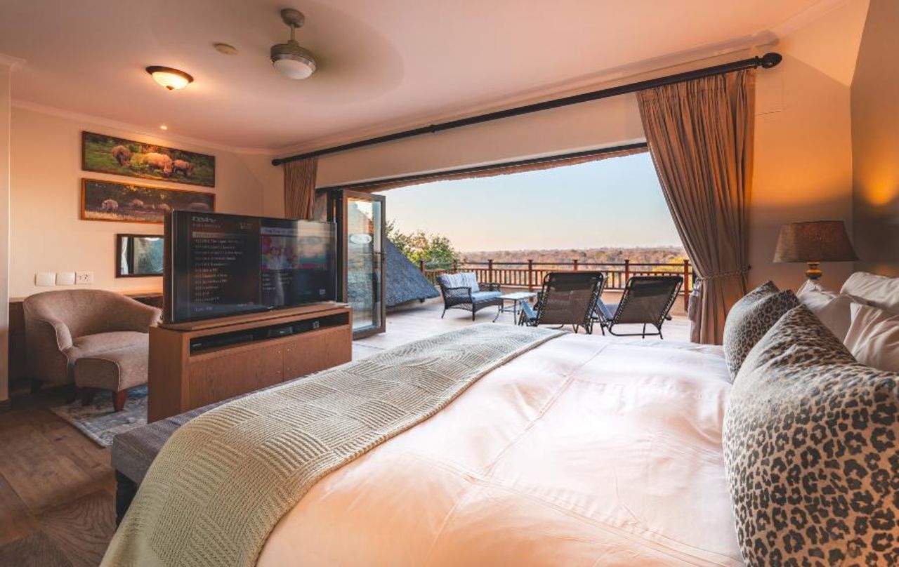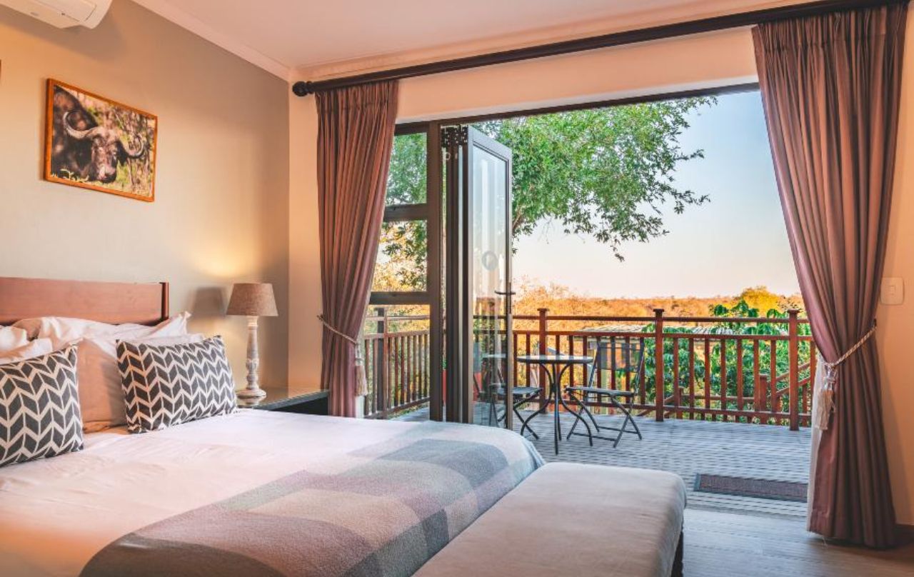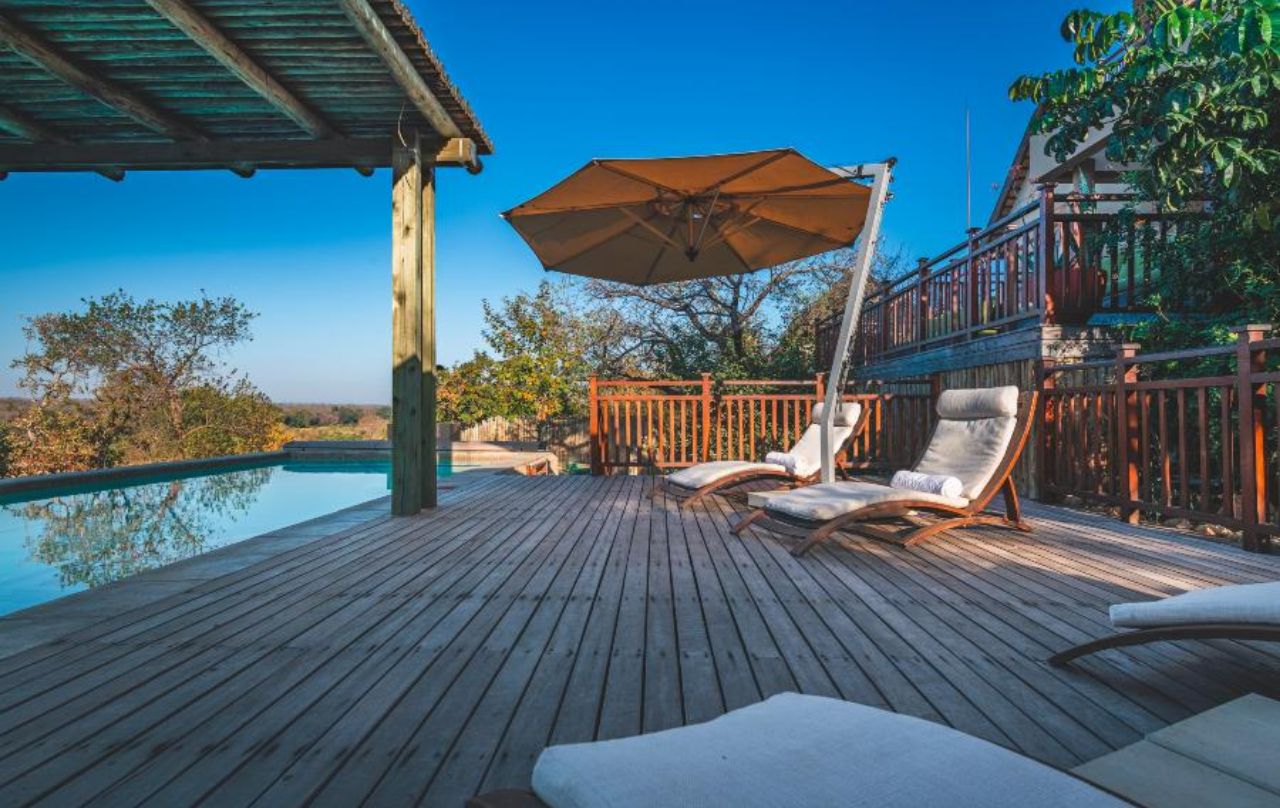 Available activities include Kruger game drives, Helicopter flight over Blyde River Canyon and fishing in the Sand River. The living area has stack doors that open onto a spacious covered deck, which has a built-in gas braai for guests to use. Stairs lead down to the lower entertainment level, where the pool and boma area are. For those who prefer to be slightly more active during their stay, the lodge also offers an air-conditioned gym room.